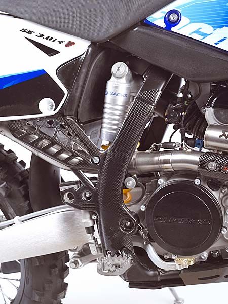 So stellt Sherco die Factory-Modelle in die Auslage. Und auch das Innenleben glänzt mit einigen ausgesuchten Komponenten. Auf den ersten Blick fast zu hübsch, um die Sherco dahin zu reiten, wo sie enorm trittsicher ist. Auf den zweiten Blick aber sind die Factory-Modelle genau für Extrem-Situationen gerade richtig adjustiert.