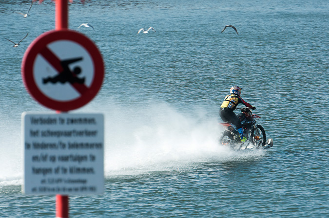 Das “Red Bull Knock Out” wird seit dem Jahr 2006 ausgetragen. Wie alle Strand-Rennen ist es ein physisch extrem zehrendes Rennen, denn der Sand wird immer tiefer und der Charakter der Spur ändert sich ständig. Auch das Motorrad wird enorm beansprucht: vor allem die Ritzel und Radlager leiden unter dem Sand. (c. panny, hubert lafer)